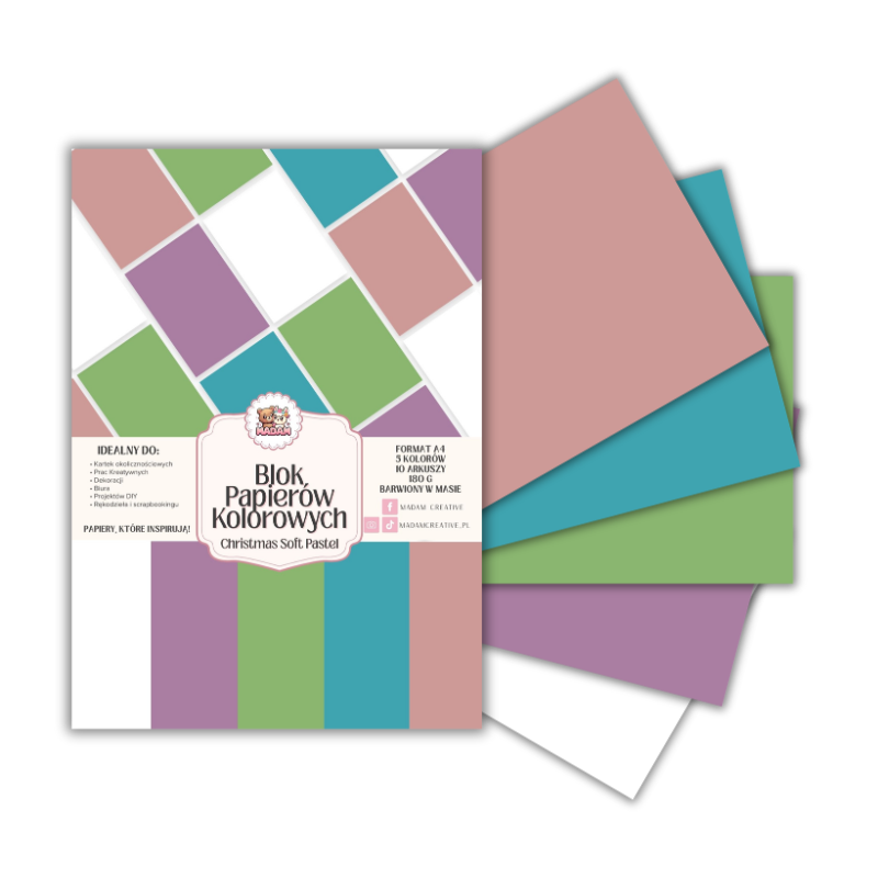 Blok papierów kolorowych A4 180g 10 arkuszy Christmas Soft Pastel, MaDam Creative
