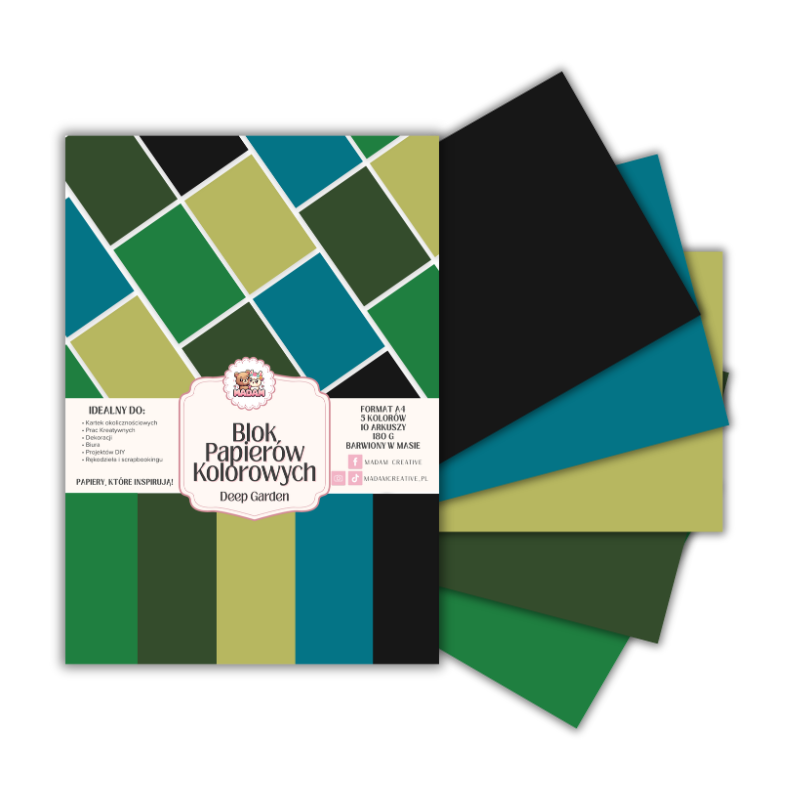 Blok papierów kolorowych A4 180g 10 arkuszy Deep Garden, MaDam Creative