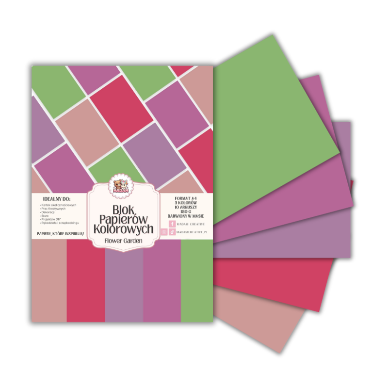 Blok papierów kolorowych A4 180g 10 arkuszy Flower Garden, MaDam Creative