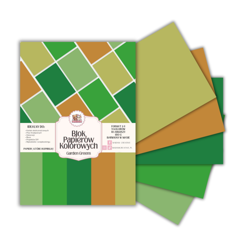 Blok papierów kolorowych A4 180g 10 arkuszy Garden Greens, MaDam Creative