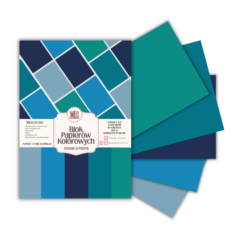 Blok papierów kolorowych A4 180g 10 arkuszy Granat & Petrol, MaDam Creative