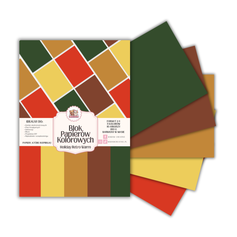 Blok papierów kolorowych A4 180g 10 arkuszy Holiday Retro Warm, MaDam Creative