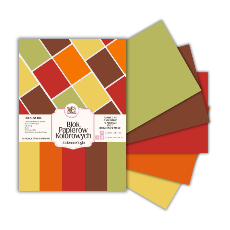 Blok papierów kolorowych A4 180g 10 arkuszy Jesienna Cegła, MaDam Creative