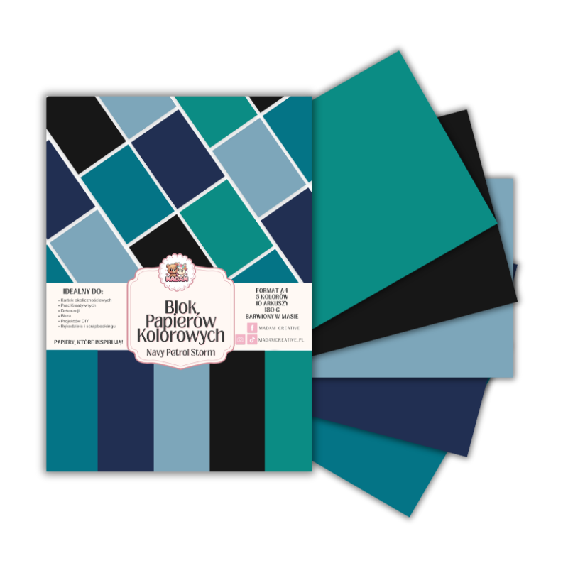 Blok papierów kolorowych A4 180g 10 arkuszy Navy Petrol Storm, MaDam Creative