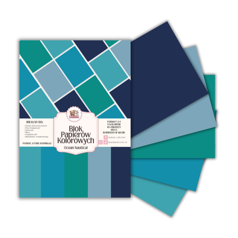 Blok papierów kolorowych A4 180g 10 arkuszy Ocean Nautical, MaDam Creative