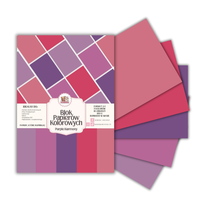 Blok papierów kolorowych A4 180g 10 arkuszy Purple Harmony, MaDam Creative