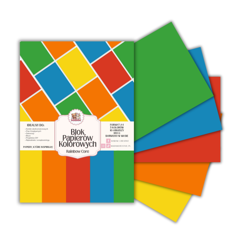 Blok papierów kolorowych A4 180g 10 arkuszy Rainbow Core, MaDam Creative