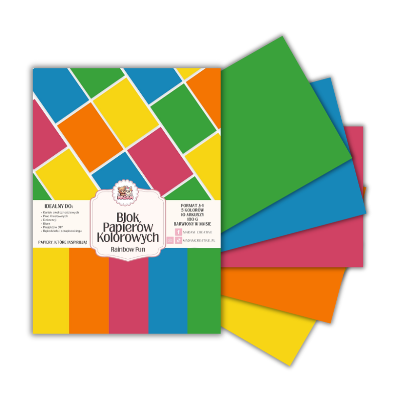 Blok papierów kolorowych A4 180g 10 arkuszy Rainbow Fun, MaDam Creative