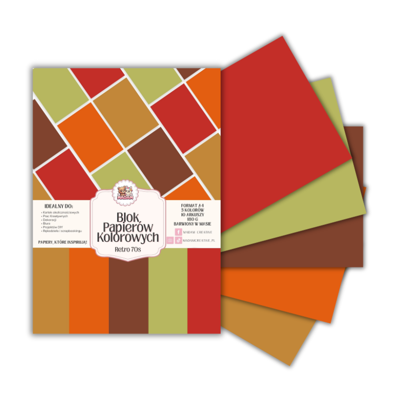Blok papierów kolorowych A4 180g 10 arkuszy Retro 70s, MaDam Creative