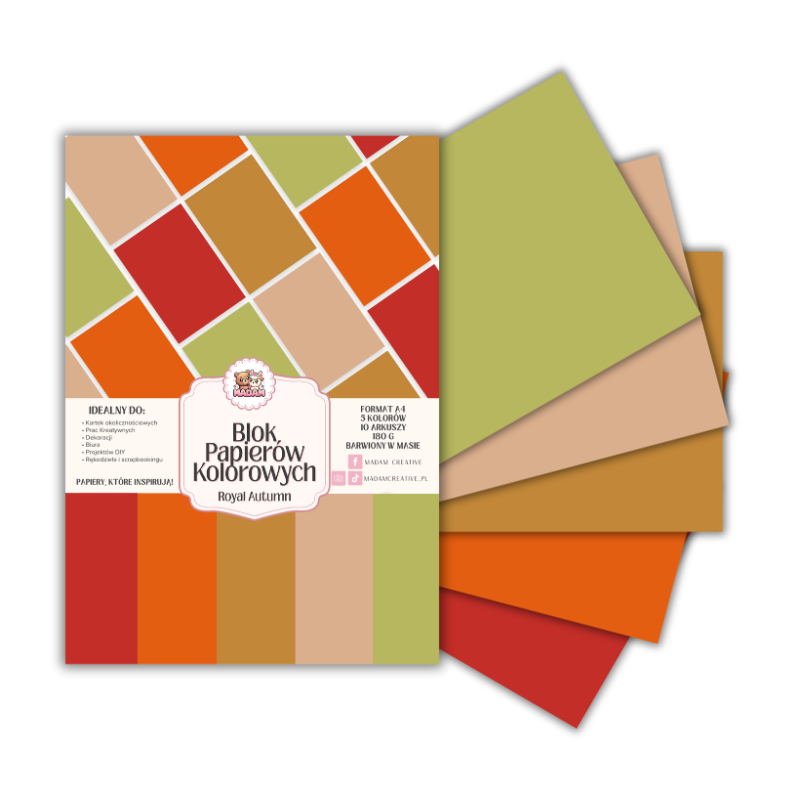 Blok papierów kolorowych A4 180g 10 arkuszy Royal Autumn, MaDam Creative