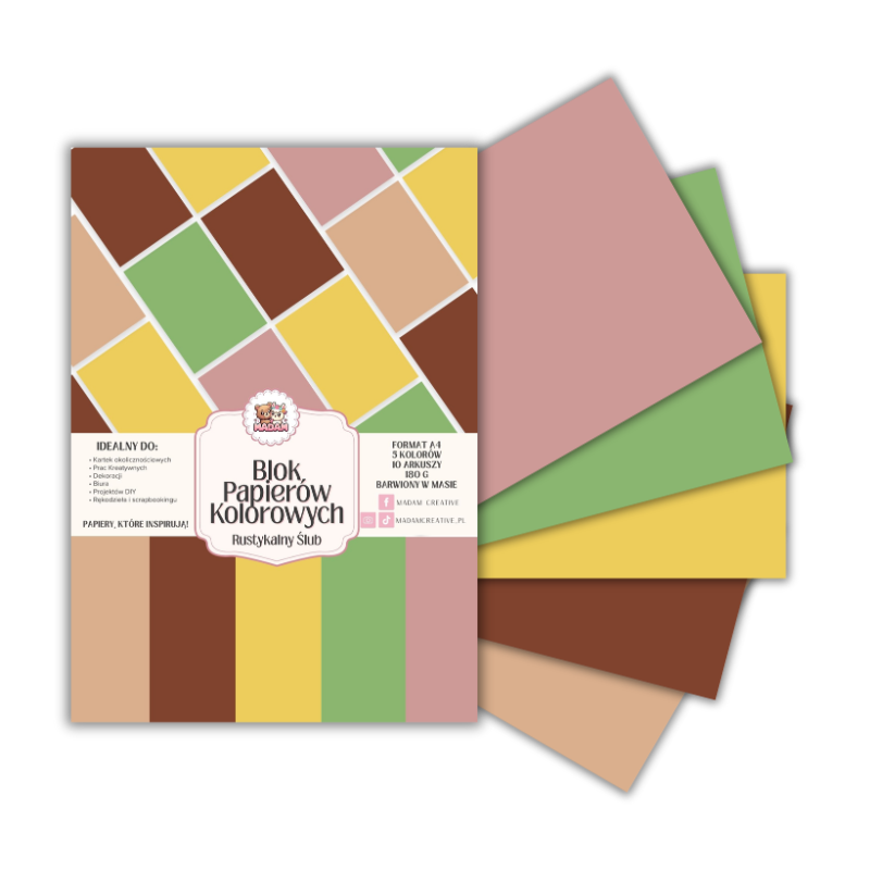 Blok papierów kolorowych A4 180g 10 arkuszy Rustykalny Ślub, MaDam Creative