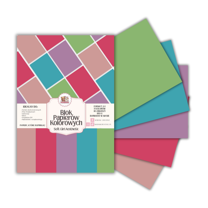 Blok papierów kolorowych A4 180g 10 arkuszy Soft Girl Aesthetic, MaDam Creative