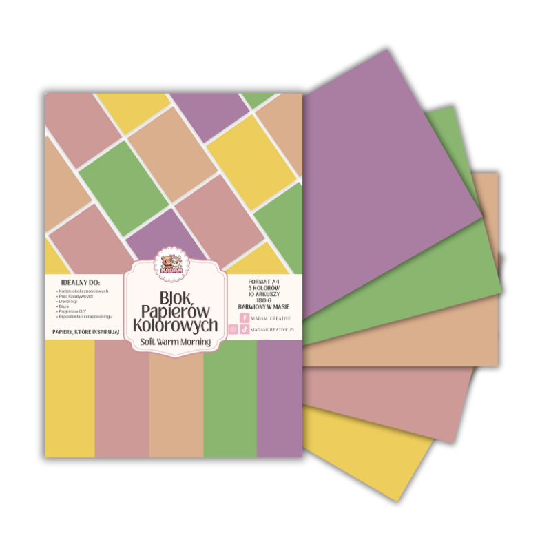 Blok papierów kolorowych A4 180g 10 arkuszy Soft Warm Morning, MaDam Creative