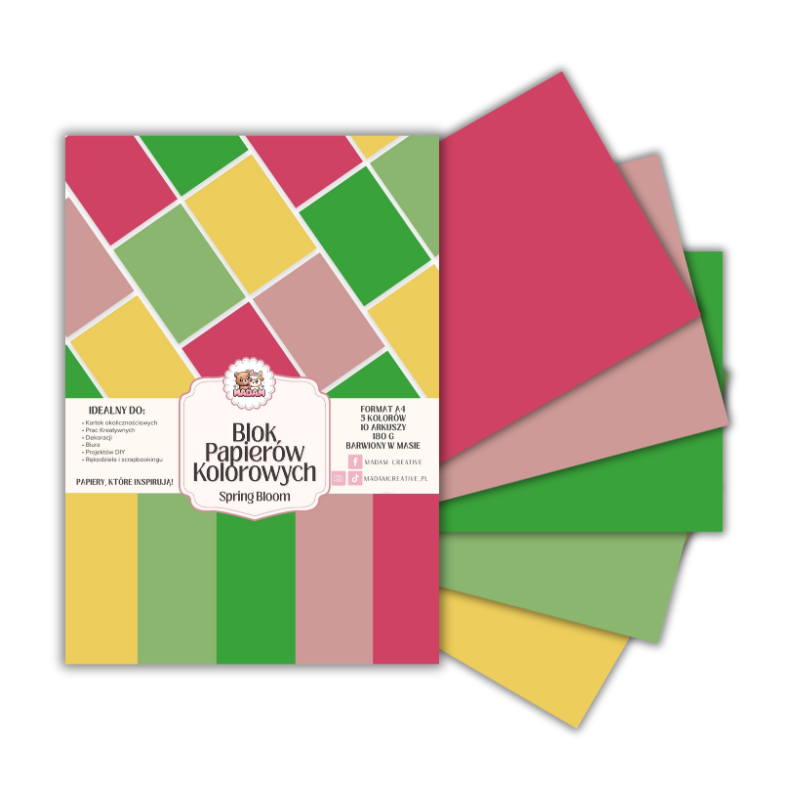Blok papierów kolorowych A4 180g 10 arkuszy Spring Bloom, MaDam Creative