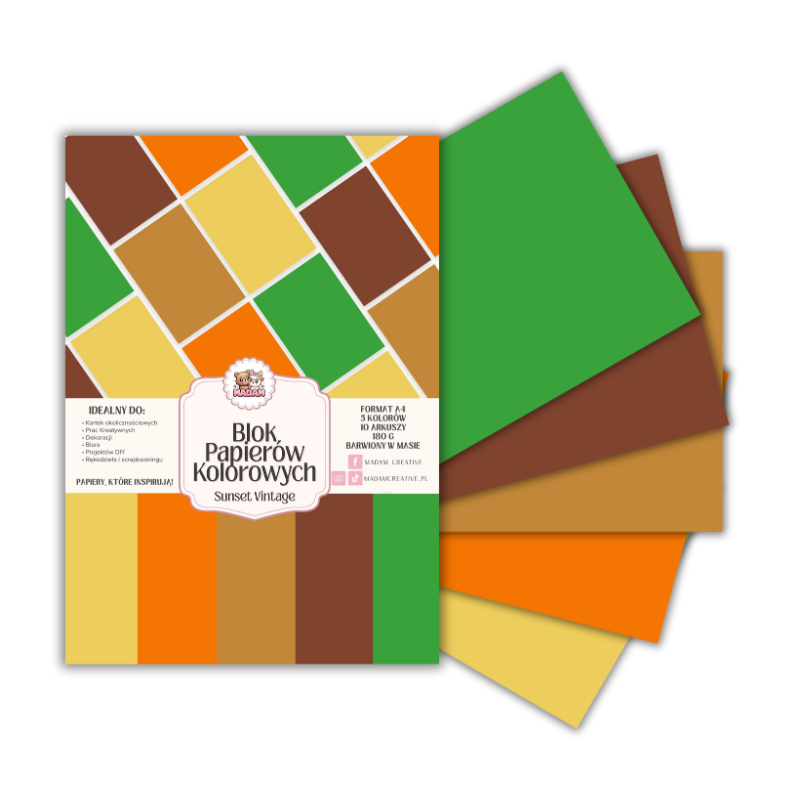Blok papierów kolorowych A4 180g 10 arkuszy Sunset Vintage, MaDam Creative