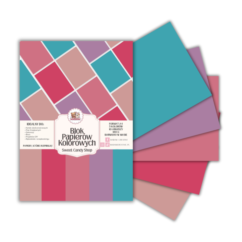 Blok papierów kolorowych A4 180g 10 arkuszy Sweet Candy Shop, MaDam Creative