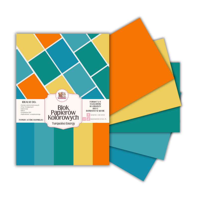 Blok papierów kolorowych A4 180g 10 arkuszy Turquoise Energy, MaDam Creative