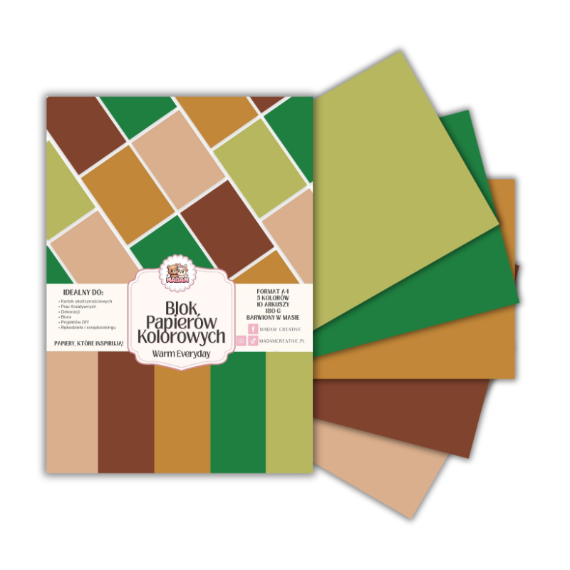 Blok papierów kolorowych A4 180g 10 arkuszy Warm Everyday, MaDam Creative