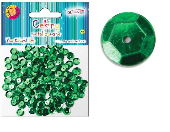 Cekiny metalizowane zielone 8 mm 10 g, Aliga