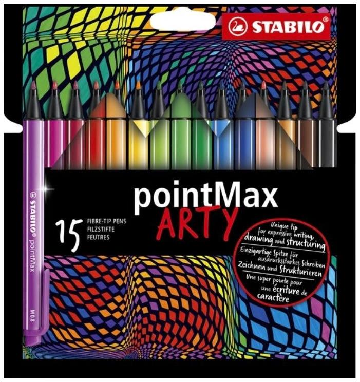 Cienkopisy Stabilo Point Max 15 kolorów 0,8 mm Arty w etui
