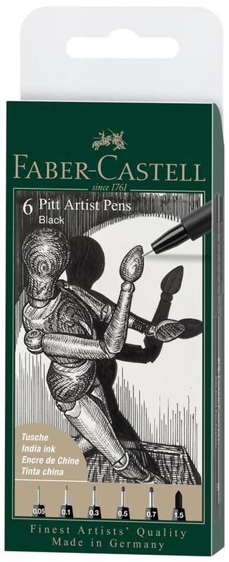 Cienkopisy artystyczne PITT 6 szt. XXS, XS, S, 1.5 Black, Faber Castell