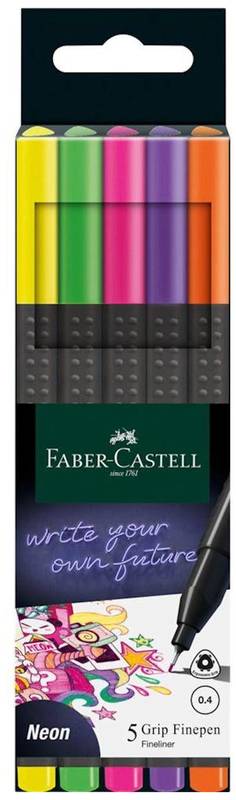 Cienkopisy trójkątne neonowe Grip 5 kolorów 0,4 mm, Faber Castell