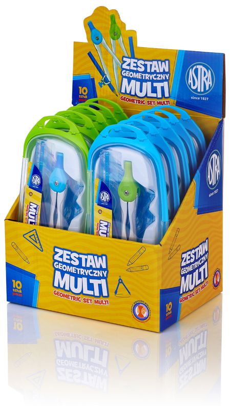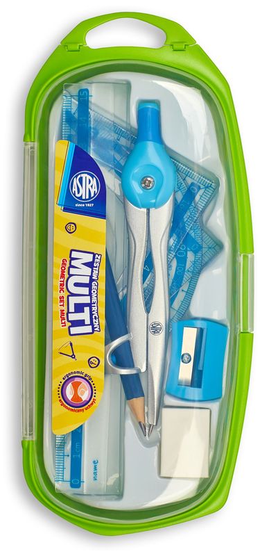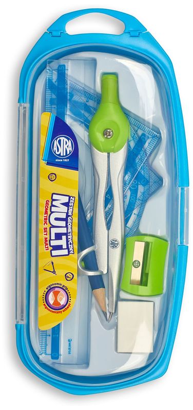 Cyrkiel szkolny z zestawem geometrycznym 8 elementów w etui, Astra