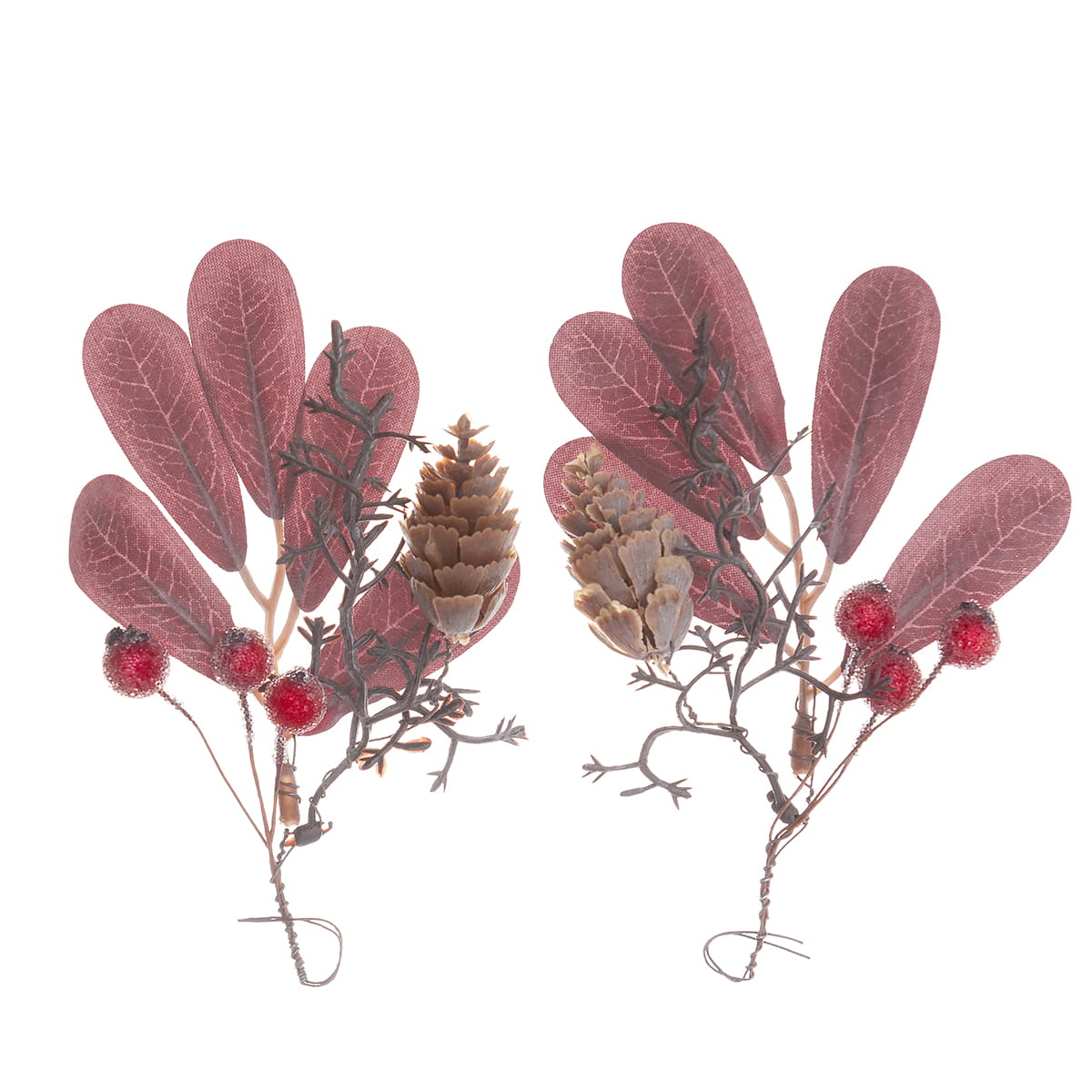 Dekoracja Gałązki szronione z czerwonymi jagodami 11cm, op. 2 sztuki, Dp Craft