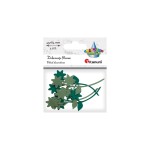 Dekoracja wykonana z filcu o grubości 1 mm. Wzór: kwiaty z gałązką, wymiary: 45 x 84 mm. 2 kolory: ciemnozielony, zielony zgaszony. Blister 4 szt.