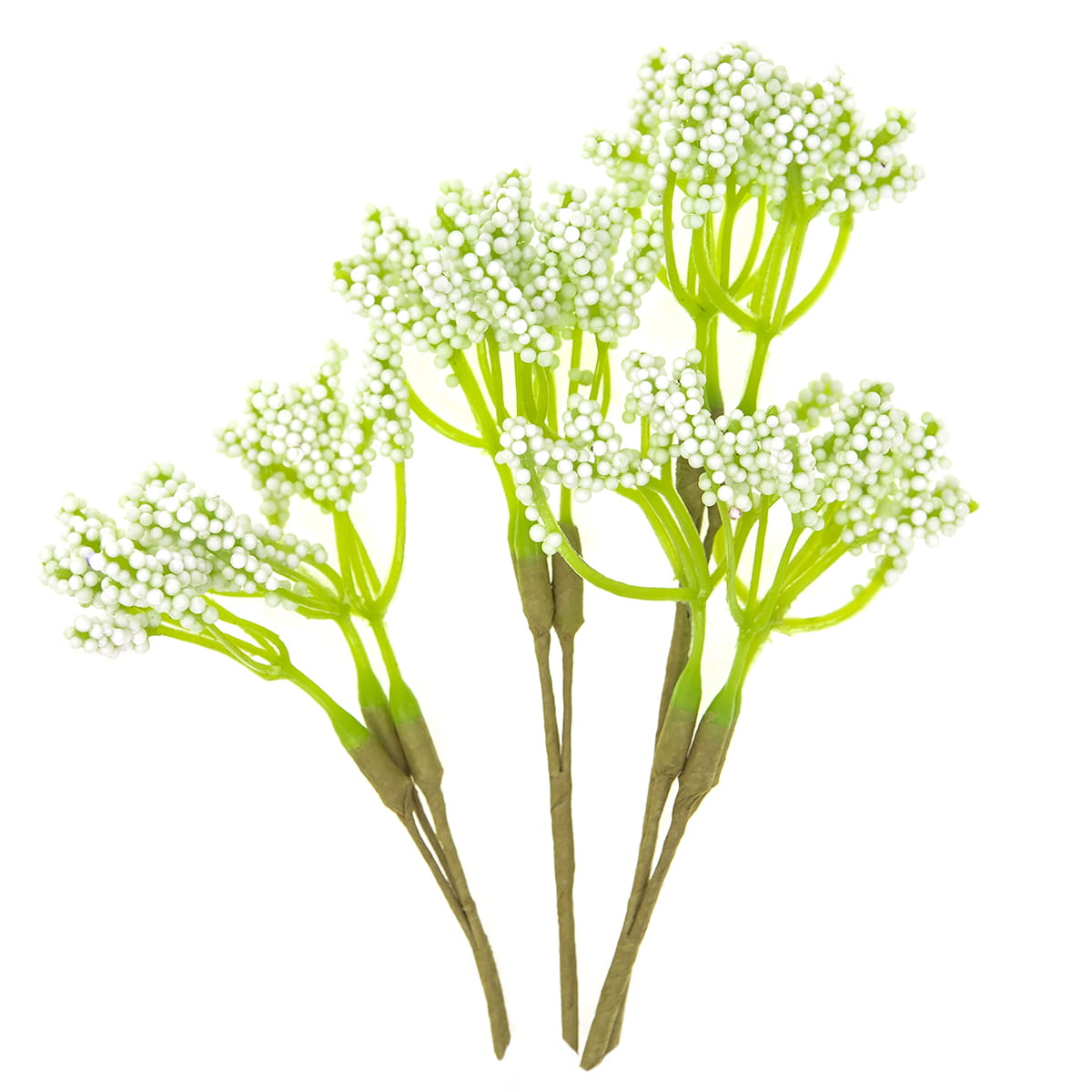 Kwiaty polne na gałązce z kremowymi kuleczkami, zakończone drucikiem. Idealny dodatek do projektów całorocznych, ślubnych, komunijnych oraz okolicznościowych.