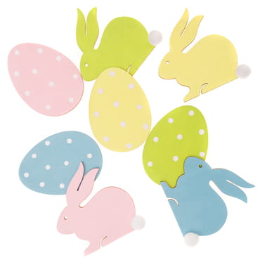 Dekoracje drewniane Króliczki i jajka pastelowe 7 cm 8 sztuk, Dp Craft