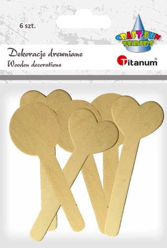 - Drewniane patyczki z dekoracją, kształty: serce, kółko, wykonane z naturalnego drewna, można je dowolnie zdobić: malować, oklejać, lakierować.