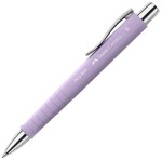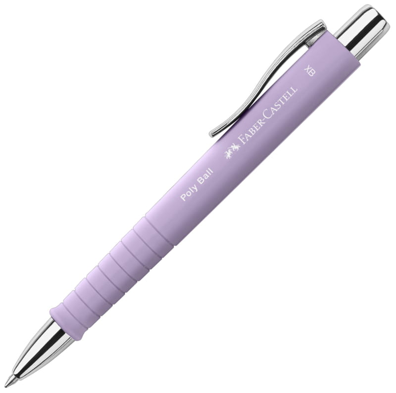 Długopis automatyczny Poly Ball Faber-Castell w kolorze matowym liliowym (Sweet Liliac). To połączenie klasyki i nowoczesności z funkcjonalnością. Przyjemna w dotyku, miękka powierzchnia w modnych kolorach gwarantuje wysoki komfort pisania bez zmęczenia, nawet przy obszernych tekstach. Ergonomiczny trójkątny kształt strefy uchwytu i rowki na powierzchni korpusu zapewniają dodatkową wygodę użytkowania. Z niebieskim, wymiennym wkładem o dużej pojemności i elastycznym metalowym klipsem. Odpowiedni do wypełniania dokumentów. Grubość linii pisania XB.