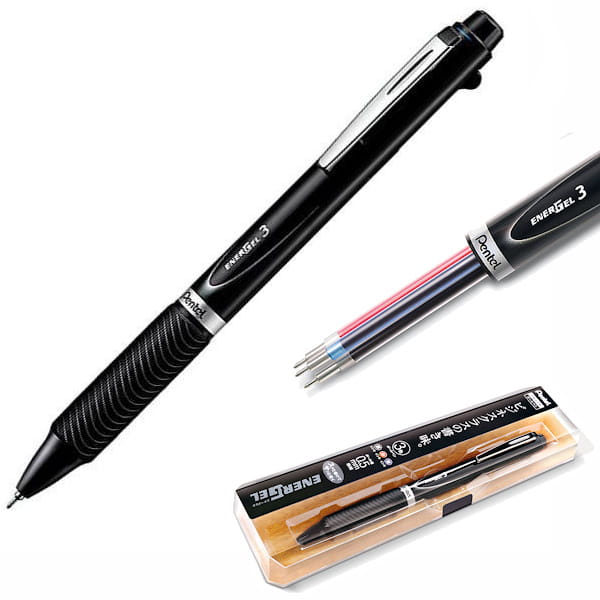 Wielozadaniowy cienkopis kulkowy do szkoły, pracy i biura. W jednej obudowie – trzy wkłady EnerGel XLRN5H: czarny, czerwony i niebieski. Tusz EnerGel nie rozmazuje się, szybko wysycha i nie blaknie.