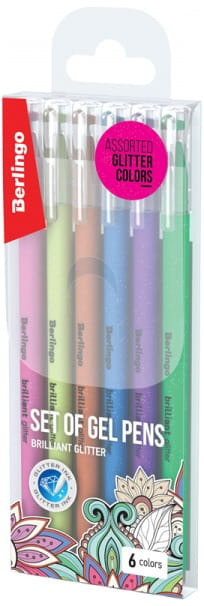 Długopisy żelowe 6-kol. Glitter 1,0 mm, Berlingo