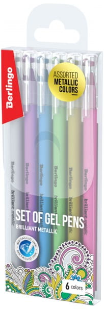 Długopisy żelowe 6-kol. Metallic 0,8 mm, Berlingo
