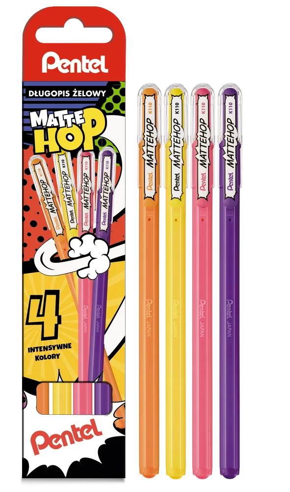 Długopisy żelowe kolorowe Pentel Mattehop 4 sztuki 1 mm