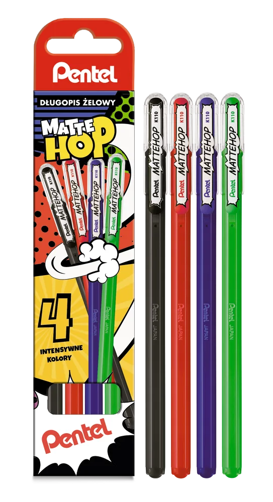 Długopisy żelowe kolorowe Pentel Mattehop 4 sztuki 1 mm