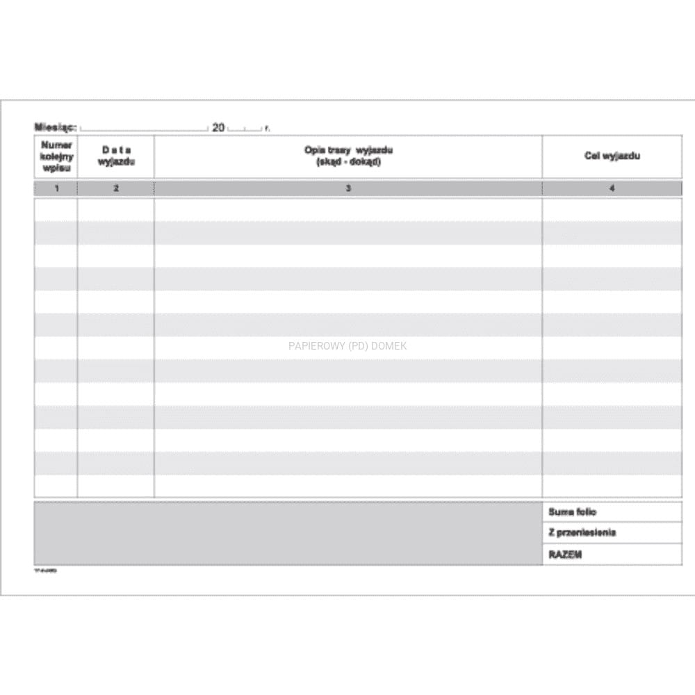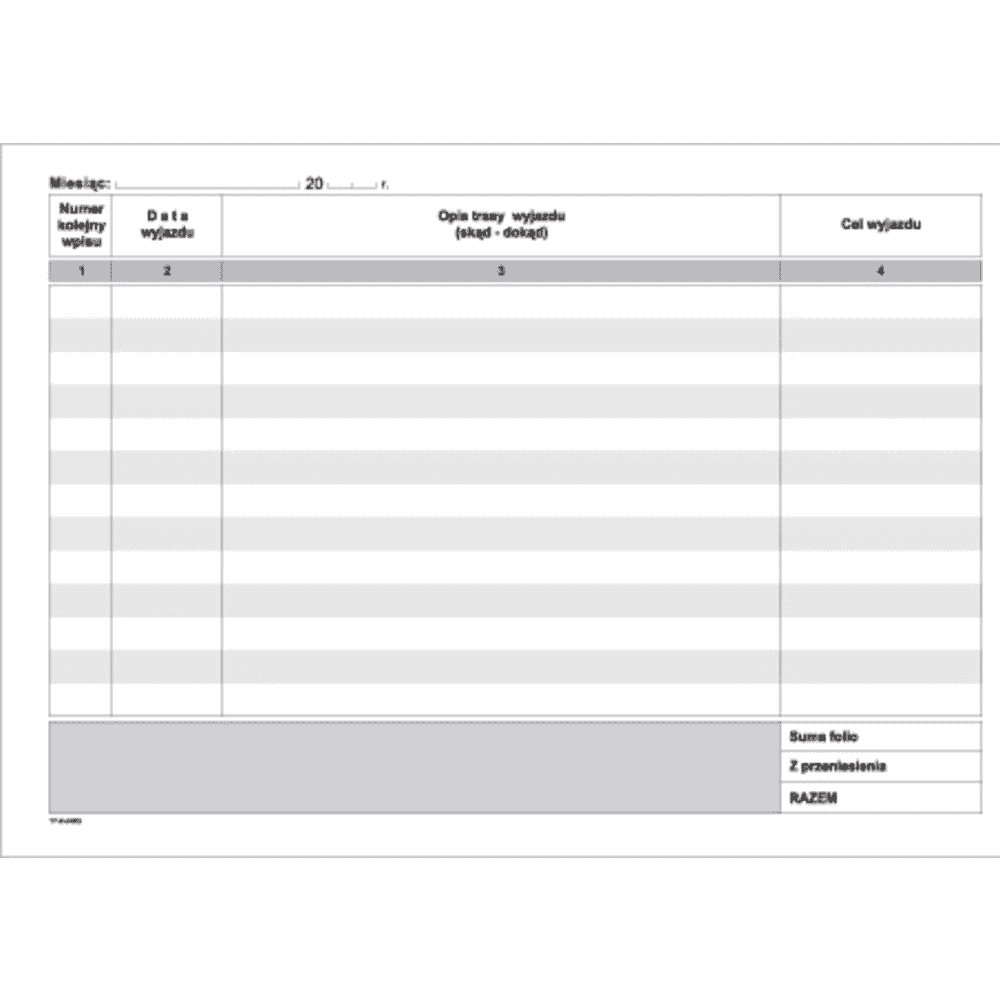 Druk Ewidencja przebiegu pojazdu A5, MiP
