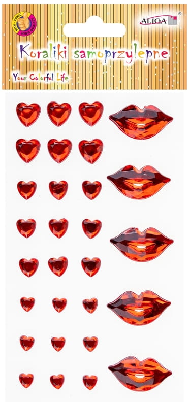 Dżety kryształki samoprzylepne JET-3156 serca i usta, mix rozmiarów, Aliga