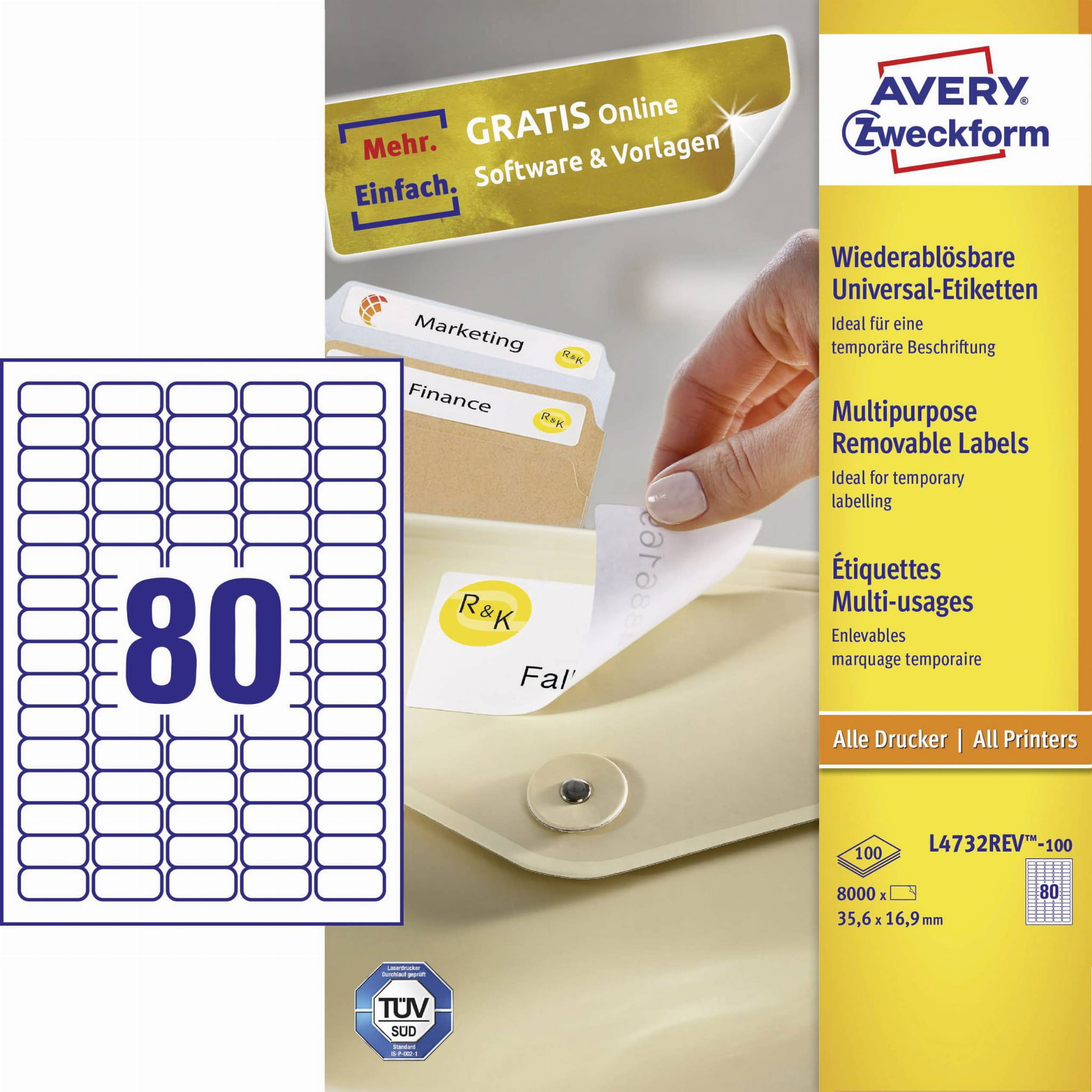 Etykiety usuwalne białe A4 dzielone na 80 - 35.6x16.9mm 100 ark., Avery Zweckform