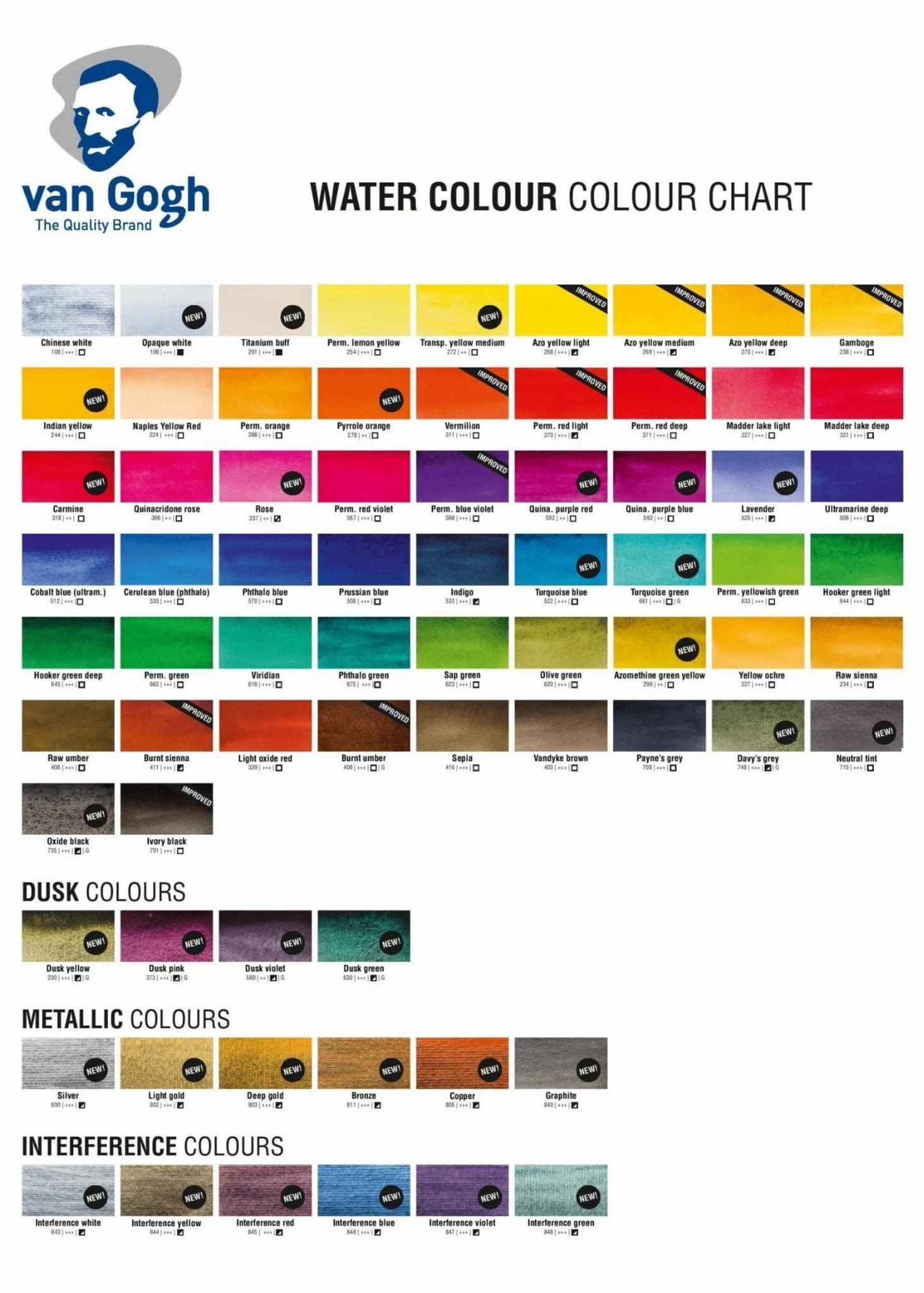 Farby akwarelowe Van Gogh to transparentne farby o bardzo intensywnych barwach. Wszystkie kolory są odporne na działanie światła. Farba jest łatwa w użyciu. Kolory z łatwością mieszają się ze sobą, dając niesamowite efekty końcowe.