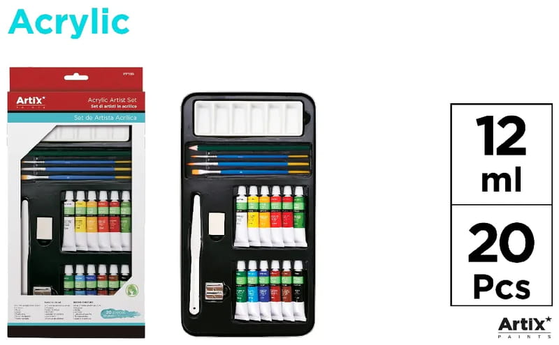 Farby akrylowe z przyborami 20 elementów, Artix