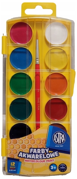 Farby akwarelowe miodowe 12 kolorów - fi 25mm z eurozawieszką , Astra