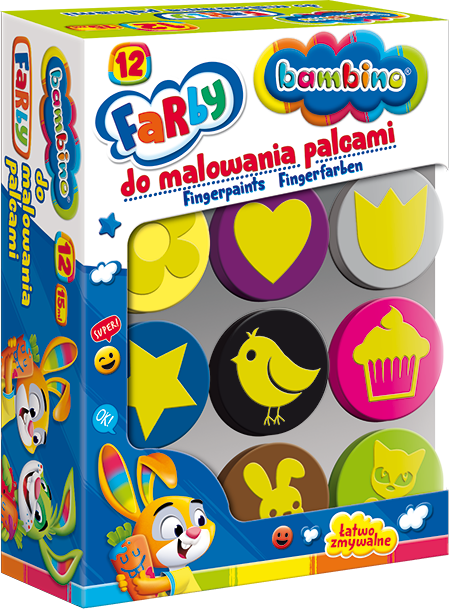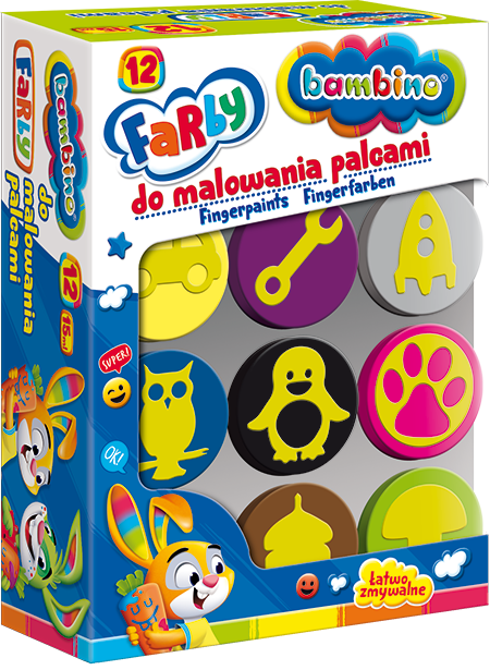 Farby do malowania palcami Bambino 12 kolorów z pieczątkami