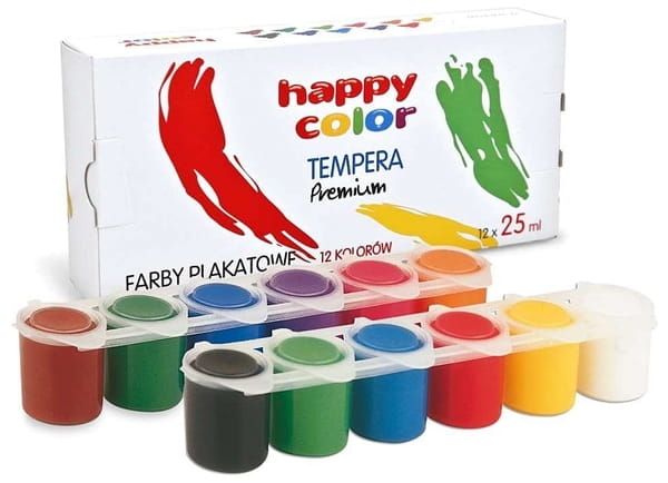Farby plakatowe 12 kolorów x 25 ml Tempera Premium, Happy Color