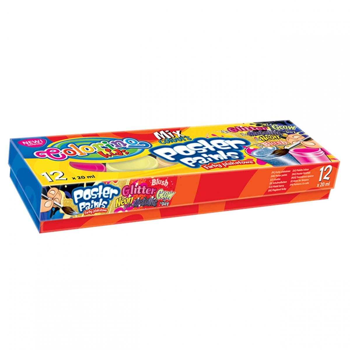 Farby plakatowe Colorino 12 kolorów mix efektów - brokat, świecące, metaliczne, neon