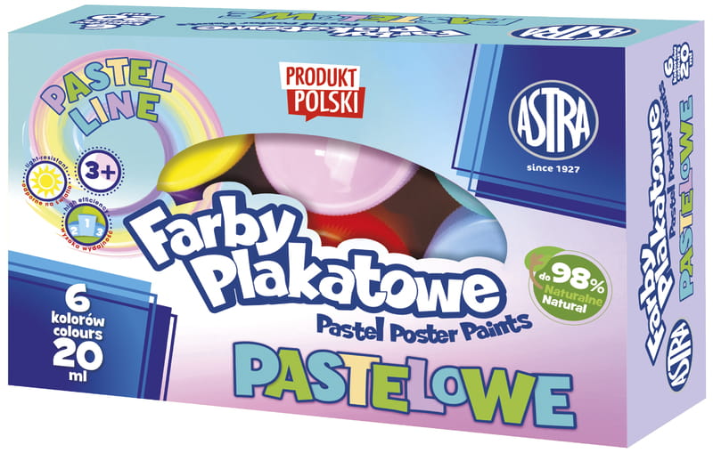 Farby plakatowe pastelowe 6-kol 20 ml Standard box, Astra