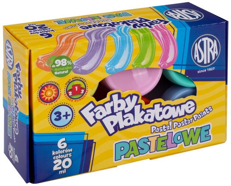 Farby plakatowe pastelowe 6 kolorów x 20 ml, Astra
