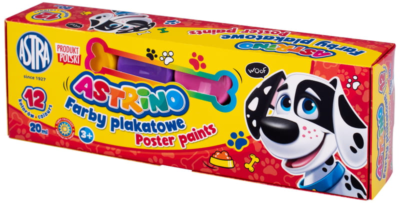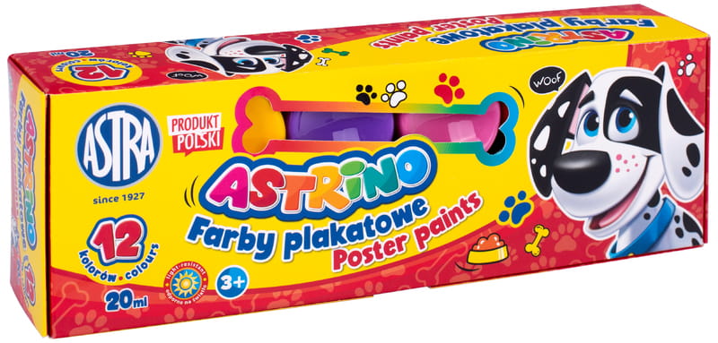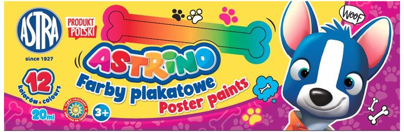 Farby szkolne plakatowe Astrino 12 kolorów x 20 ml, Astra